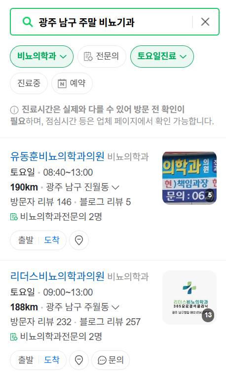 네이버 지도 검색: 네이버 지도 앱에서 '광주 일요일 비뇨기과', '광주 공휴일 비뇨기과'으로 검색하면, 실시간으로 운영 중인 병원을 찾을 수 있습니다.
