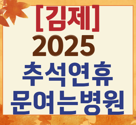 이번 글에서는 김제시에서 추석 연휴에도 운영하는 병원들을 정리해드리니 참고하시기 바랍니다.