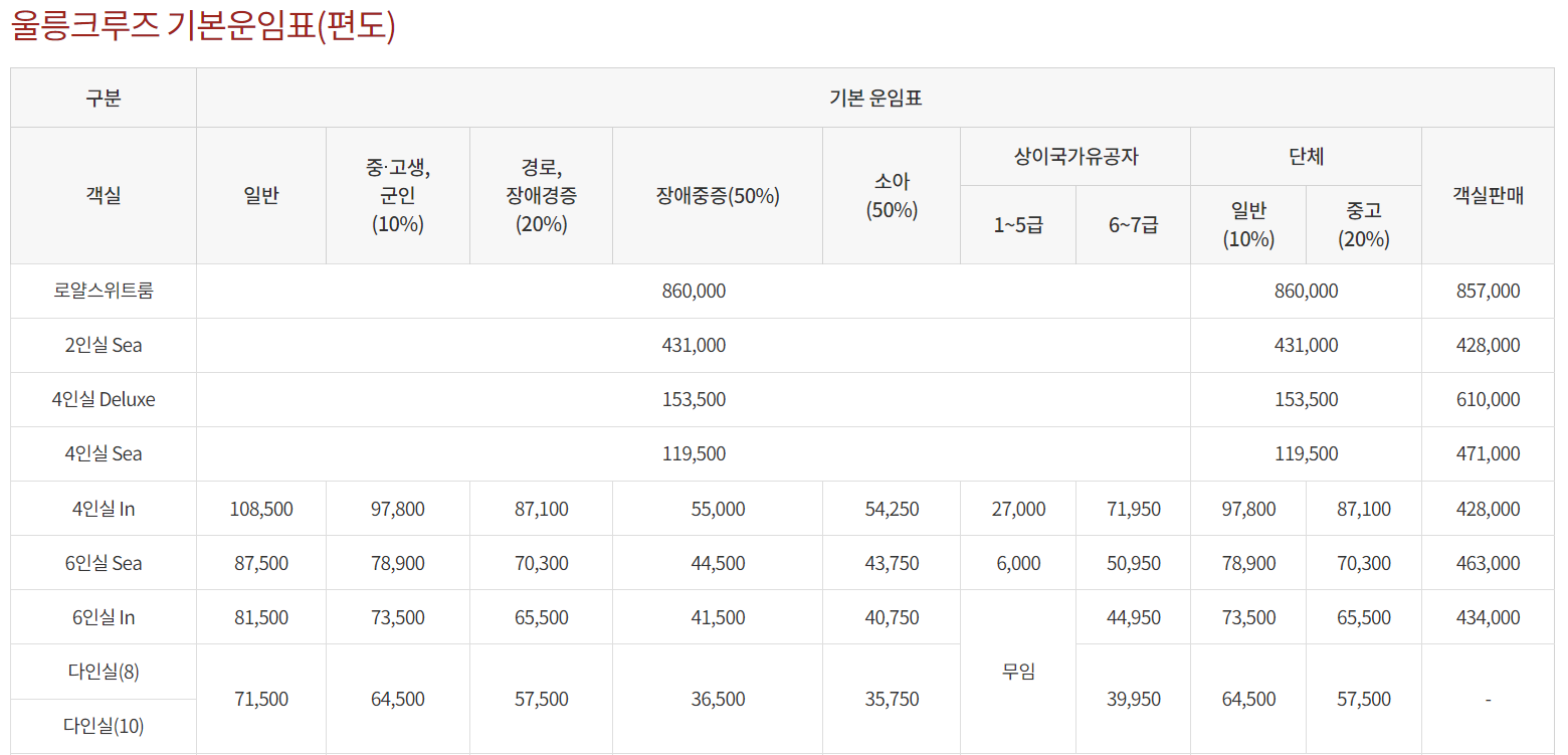 💰 포항 울릉도 크루즈 요금