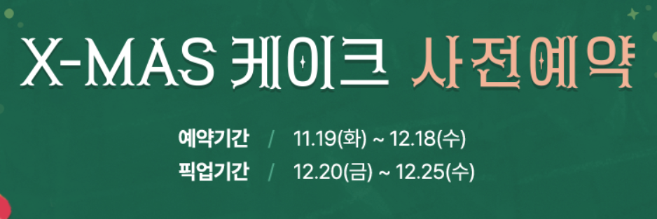 달콤한 크리스마스를 위한 케이크를 미리 예약하고, 풍성한 할인과 경품을 놓치지 마세요!