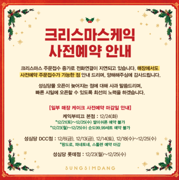 👇[성심당 크리스마스케이크 사전예약] 아래에서 바로 하세요!👇