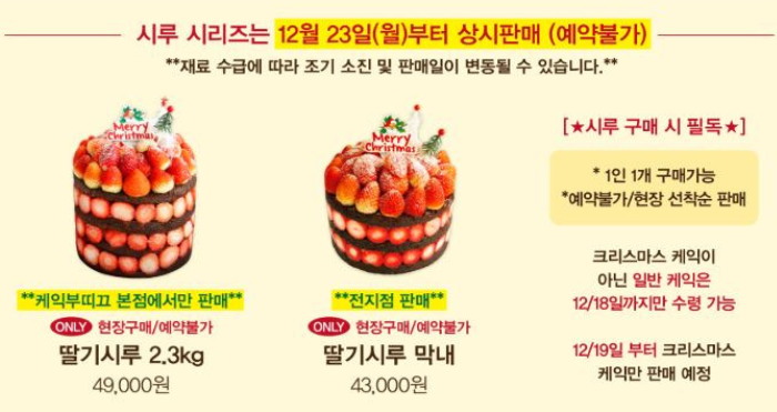 - 딸기 시루 판매 시작: 2024년 12월 23일 (예약 불가, 현장 구매만 가능)