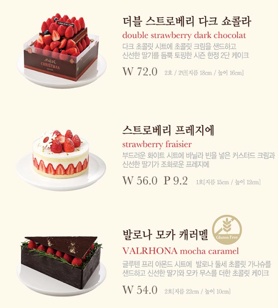 - 특징: 발로나 초콜릿과 모카 무스, 신선한 딸기의 절묘한 조화.