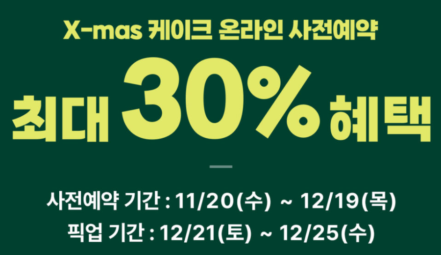 크리스마스 시즌 동안 케이크 품절 걱정 없이 예약할 수 있도록 사전예약이 진행됩니다.