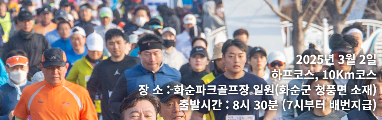 대회는 하프코스와 10km 코스로 진행되며, 출발점은 화순파크골프장 일원입니다.