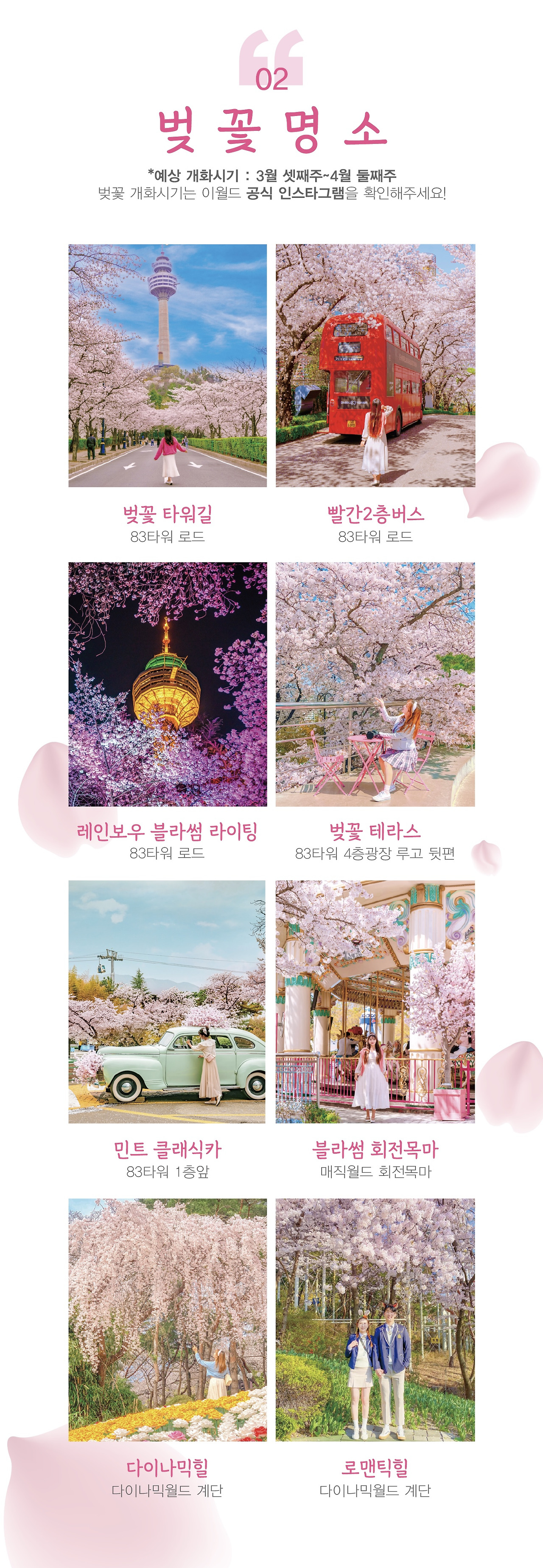 - 추천 장소: 83타워 아래 잔디밭, 벚꽃 거리, 스카이로드