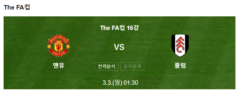 2025년 3월 2일(일) 새벽 1시 30분(한국시간, 경기시간 변경), FA컵 5라운드(16강) 경기가 맨체스터 유나이티드의 홈구장 올드 트래포드에서 펼쳐집니다.